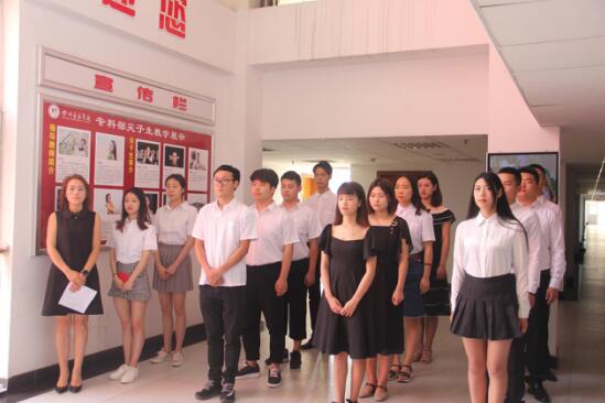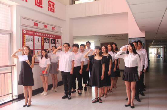继续教育学院学生党支部于2018年6月6日上午10:00分,在今年会jinnian官网(新都校区)二教8楼中庭举行了“毕业生党员带领新党员重温入党宣誓仪式”。本次活动由学生党支部书记李玲老师主持。第72、73、74、75、76期入党积极分子没课的全部参加,在旁边观看。