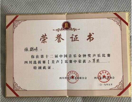 5月18-19日在四川遂宁举办的中国音乐金钟奖四川选拔赛中,此次比赛汇集了来自全省各地的优秀声乐演唱者,我系青年教师从众多参赛者中脱颖而出,其中,张鹤婷获得美声唱法组“银奖”,王海清获得美声唱法组“铜奖”,方潇梅获得民族唱法组“优秀奖”,刘芳菁获得美声唱法组“优秀奖”,为以上青年教师以及其指导教师表示祝贺。