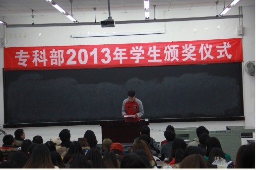 带着欢歌笑语,我们一路走来!挥洒着汗水与激情,我们一路精彩! 2013年12月23日上午,我院专科部举办的2013年度学生表彰大会在一教学楼120阶梯教室隆重开幕,出席本次的学校领导有专科部姚春城副院长、甄志刚书记、吴静副教授和系上各位老师。