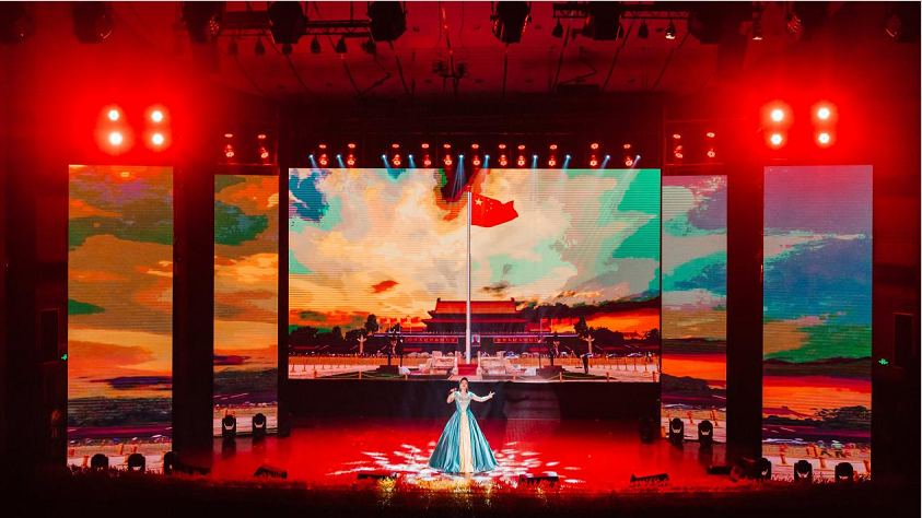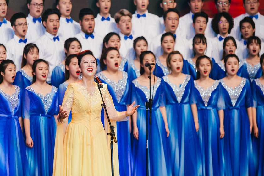 演出在继续教育学院学生合唱团铿锵有力的一曲《唱支山歌给党听》合唱曲中拉开帷幕。紧接着一首首旋律动人的原创歌曲陆续上演。老师和同学们的深情献唱和精彩表演,展现出了继续教育学院师生对党无限深情和祖国的热爱,赢得在场观众阵阵掌声和热烈欢呼。演出最后,全体起立,全场观众挥动着鲜红的党旗,与继续教育学院演出师生一起唱响《我的祖国》,一起唱响时代最优美动听的旋律,文艺演出在嘹亮的歌声中结束。