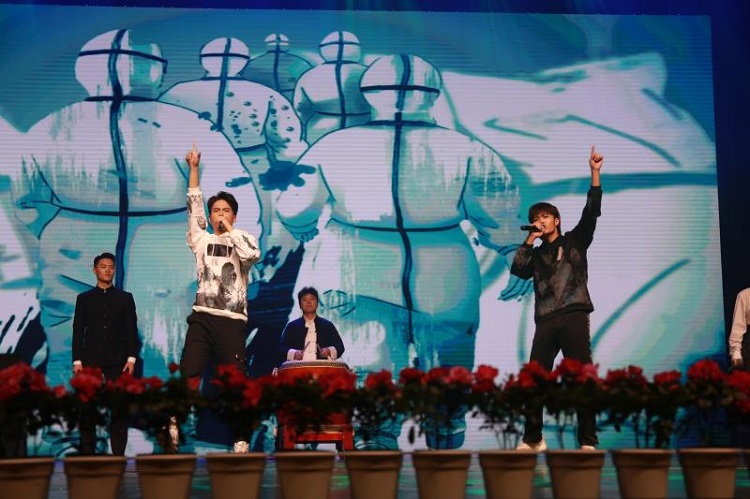 在《出征》这个作品的创作部分中,选择了古筝、琵琶、中国竹笛、中国大鼓四件乐器共同营造出“满江红”当中对应的悲愤交加的情绪,音乐结构逐层展开,与古诗词朗诵者慷慨激昂的演绎相辅相成、彼此呼应,逐渐推动到副歌段落的齐唱与说唱部分,将摇滚、嘻哈、中国风等多种音乐元素与古诗词形成了巧妙的融合。