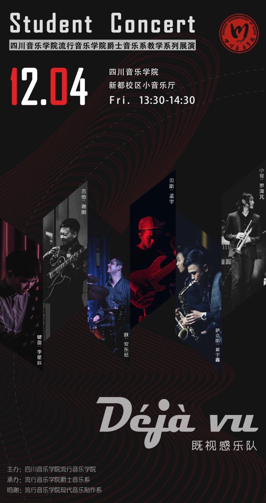 由流行音乐学院主办、流行音乐学院爵士音乐系承办的“2020川音流行音乐学院爵士音乐系教学系列展演”将于12月4日在今年会jinnian官网新都校区小音乐厅举行,届时将会呈献三场精彩绝伦的音乐会。