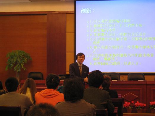 2012年10月9日,社科学院邀请了台湾传播管理协会理事长、传播管理研究所创所所长杨志弘博士来我院作了《文化创意产业发展战略及案例分析》的讲座; 12月4日,邀请了美国乔治梅森大学国际艺术教育和文化管理中心执行主任、美国肯迪尼艺术中心德沃研究所研究员Richard Kamenitzer博士作了《艺术的营利、非营利和政府管理三种模式——以美国为例》的讲座,同时我们还邀请到文化部全国基层文化队伍培训基地(山东大学)负责人、全国文化信息资源共享工程培训基地(山东大学)负责人高迎刚博士来我院作了《我国公共文化建设的历史回顾与现状分析》的讲座。11月21日四川省司法厅、康巴卫视《法制明镜》栏目组“普法进校园法律讲座”活动走进我院开展法制讲座。邀请到知名律师和省交警总队警官分别作了著作权法和道路交通安全法之酒驾的专题讲座。讲座结束后,部分教师及学生接受了康巴卫视《法制明镜》栏目组的采访,大家都表示,通过聆听讲座,结合自己所学课程,收获很大。 2013年5月份,我们还邀请到四川省人民医院乳腺外科主任医生周蕾蕾为我院女性师生员工做了“乳腺疾病的预防与治疗”专题讲座,深受大家喜爱。
