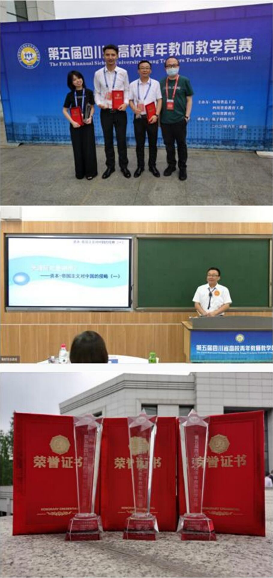 6月18日至20日,由四川省总工会、四川省委教育工委和四川省教育厅主办,电子科技大学承办的第五届四川省高校青年教师竞赛总决赛在电子科技大学清水河校区成功举行。来自全省36所高校的93名进入决赛的选手同台竞技,包括今年会文科组2名教师和思想政治课组1名教师,经过紧张激烈的比拼,马克思主义学院教师朱社员老师荣获“思想政治课组”三等奖。