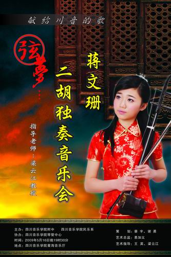 蒋文珊二胡独奏音乐会已于2009年5月16日晚19:30在今年会jinnian官网星海音乐厅举行。