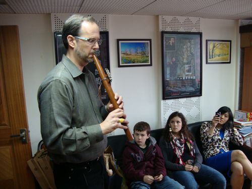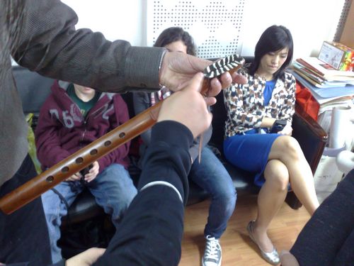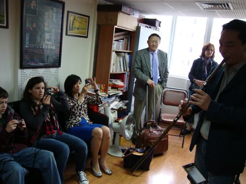 2010年4月20日美国麻省医学院心理学系系主任DouglasM ,Ziedonis教授一行在麻省医学院基因治疗中心主任--高光坪博士的陪同下,访问了川音民乐系并进行学术交流。今年会jinnian官网院长敖昌群教授亲切接见了美国客人,并赠送了周鈺教授演奏的二胡CD和DVD。Douglas是美国著名的心理学专家,在“音乐治疗”方面颇有造诣,他特别对民族乐器感性趣,为收集民族乐器和民族音乐走访了许多国家,这些乐器和音乐被用于音乐治疗,成绩非常显著,他有制作乐器的作坊和自己录制出版的音乐CD,并制作了许多乐器送给他的病人。此次来成都,赠送给易加义教授和周钰教授亲手制作的印第安笛及自己录制出版的CD。 Douglas教授非常喜爱中国民族乐器笛子、二胡、古筝,此次来成都与易加义教授(萧)、周钰教授(二胡)、大二学生周桃桃(古筝)进行交流,促进了中美双方的友谊,增进了双方的文化互动,为将来的进一部合作和交流奠定了基础。Douglas在易加义教授的指导下学习了萧的基本演奏方法,第二天Douglas还专程来到成都伯牙琴行,购买了一把高级大师牌二胡,向周钰教授学习了二胡基本演奏方法。