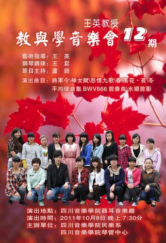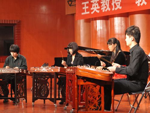 此场音乐会以一曲霸气十足的将军令开场,由王老师亲自带领学生演绎,一举将音乐会迎上高潮,赢得满场热烈掌声。接踵而至的是易柯院长的作品神女赋,激情的演奏让人神合一和浪漫理想情怀得到完整抒发。悲情九歌中的“九悲”体现了老师与同学为拓展扬琴表现力做出的进一步探索与尝试。一首春行云流水,妩媚多姿,让现场的观众心旷神怡,仿佛与自然融为一体。叹息声中的落花夜,仍然是惋惜中的天籁。落叶迎来的冬,寒风潇潇,白雪飘落,淡香沁心,千姿百态。巴赫的作品让音乐会一度推向高潮,赋格曲三声部清晰利落的音律,明亮干净的音色,秀出了扬琴不同的风姿! 整场音乐会,在一曲江南丝竹重奏,水乡剪影中意犹未尽的结束了,期待下一期同学的精彩表演!