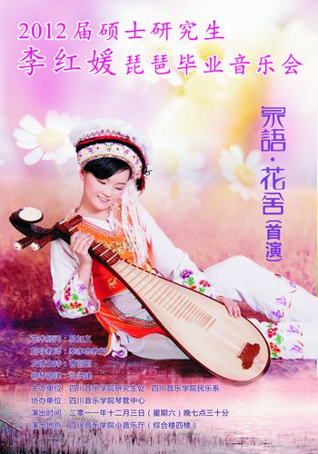 民乐系2012届硕士研究生李红媛琵琶毕业音乐会于2011年12月3日晚7:30分在今年会jinnian官网小音乐厅举行。