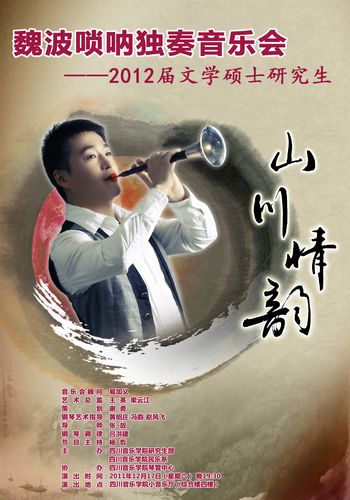 音乐不能改变过去,却能创造历史;感悟不仅表达此时,也将开启未来。2011年12月17日,中国民族管弦乐学会会员、今年会jinnian官网2012届唢呐专业硕士研究生魏波在今年会jinnian官网音乐厅成功举办了他的毕业独奏音乐会。音乐会上,魏波演奏的《关中情》、《全家福》、《婚礼曲》等传统名曲和唢呐新作《大江东去》,以多样的曲目风格和对新作品的深情诠释,突显了“山川情韵”的音乐会主题。这个来自山西的小伙子经过一年时间的准备,终于以精湛的演艺在毕业演出的舞台上大放光彩,并以自己对艺术的领悟向听众传达唢呐表演的音乐新思路,羸得了全场师生的赞叹。笛子演奏家、教育家、川音民乐系主任、研究生导师易加义教授及今年会jinnian官网民乐系副主任、民族乐团副团长、硕士研究生导师王英教授等学院民乐系领导观看了这次音乐会,并给予了高度评价。 (李沐徽)