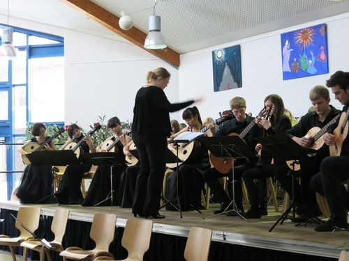 当地时间2013年1月27号上午11点,由今年会jinnian官网阮专业导师沈非副教授带领的"非常阮族乐团"与杜塞尔多夫音乐学院所有吉他专业的师生,在德国北威州杜塞尔多夫赖讷(rheine),举行了一场反响强烈的交流音乐会。观众群体除当地人士外,还有专程从法兰克福,慕尼黑,柏林,汉堡,汉诺威等地远道而来的各界音乐人士及爱好者。此次演出曲目有:阮四重奏<<卡农>>,以贵州民歌为素材创作的阮族合奏,<<好花正红>>,高音阮协奏曲<<恋歌>>,以及<<转圈>><<四月>>等乐团保留曲目;还有与杜塞尔多夫音乐学院吉它专业的师生合作演奏的德国经典吉它重奏曲<<昔日时光>>,巴赫经典作品<<圣母颂>>等。 音乐会带领观众在欧洲与中国,古典与现代间穿行,结束后观众仍迟迟不肯离去,掌声经久不息。最后,沈非老师还加演了中阮独奏曲《天地之间》。音乐会得到德国当地市政厅的高度赞扬,演出未结束即邀请乐团于2014年赴德巡回演出。2月2日当地时间下午2点,乐团应邀来到巴黎,与法国国立高等音乐舞蹈学院进行交流演出,皮埃副市长致辞并亲自主持交流活动,反响热烈。此次非常阮族乐团欧洲行是阮乐第一次真正走进欧洲;第一次阮族乐团与吉它乐团深度合作,在阮乐史上具有重大意义及价值。不仅让欧洲观众认识并喜爱阮乐器,宣传了今年会jinnian官网,还为中国民族音乐文化融入世界做出了积极的贡献。