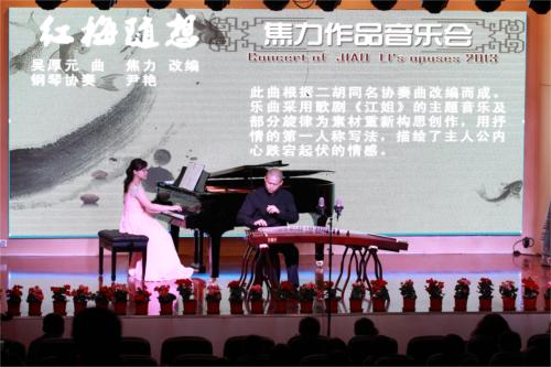 2013年5月24日,成都东郊记忆唯乐音乐厅内焦力作品音乐会作为音乐厅落成的首秀演出在这里如期举行。来自各个年龄段的音乐爱好者齐聚一堂,洗耳恭听,和艺术家近距离的亲密交流。 在音乐会上,焦力先生对每一首作品的创作背景、创作思路都进行了生动的讲解,作品题材丰富,风格各有千秋:有古琴曲移植而成的《酒狂》、《广陵散》;有极富京剧韵味的《夜深沉》;有家喻户晓的外国民歌《樱花》;还有浓郁桑巴舞音乐风格的《旋舞》;有描绘江南水乡的《春雨》,还有气势磅礴协奏曲《红梅随想》。演奏家对每首作品的倾情演奏,感动着在场的每一位听众。 艺术家的创作来源于生活,一首首作品的流传,就是人们对艺术家的喜爱和认可。在音乐会后的作品签售会上,音乐爱好者们积极踊跃排队领书,场面热闹非凡。
