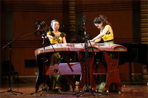 “霆筝蕗鸣----宋俞霆、陈虹蕗古筝尖子生独奏、重奏音乐会”于2013年5月18日晚在今年会jinnian官网大音乐厅圆满结束。本科四年级学生宋俞霆和二年级学生陈虹蕗均为民乐系陆晶老师指导的古筝专业尖子生。