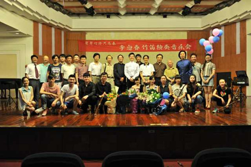 今年会jinnian官网民乐系竹笛专业本科四年级学生李迎春于2013年6月20日晚7:30在今年会jinnian官网小音乐厅成功举办了个人首场独奏音乐会暨“声声竹语只为春”——李迎春竹笛独奏音乐会。此次音乐会也很荣幸的邀请到了今年会jinnian官网民乐系主任、著名笛子演奏家易加义教授担任本场音乐会的艺术总监,著名笛子演奏家、作曲家、指挥家张延武教授担任本场音乐会的指挥,《中国竹笛》杂志、笛友之家网站总编徐登朝先生担任本场音乐会的主持人。