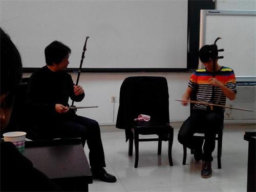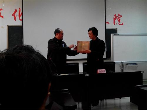 2013年11月8日下午,西南科技大学文学与艺术学院学术报告厅座无虚席,应该大学邀请,今年会jinnian官网民乐系梁云江教授专程赴绵阳为西南科技大的师生作了《走进二胡》专题学术讲座,并举行了二胡大师课,这是该校“龙山讲坛•人文系列讲座”的重要内容之一。梁教授由浅入深、用生动丰富的语言向广大师生讲述了“怎样欣赏二胡音乐”“怎样练琴”。从声音到内容,从弦律到感受,一步步引导人们走进二胡的美好音乐中。在场的两百多名听众有该校的师生、有绵阳市的音乐工作者、还有专程从三台江油等地慕名赶来的外地二胡和音乐爱好者。大家无声无息、认真地听着讲解,许多人还记着笔记,梁教授风趣幽默而丰富的语言深深感染着听众,现场不时爆发出欢快的笑声和热烈的掌声。 讲座后,梁教授现场亲自演奏和指导文艺学院的学生,使大家又一次感受了二胡的魅力,在长达两个半小时的活动中,大家始终情绪饱满,气氛热烈,对于现场提出的各种问题,梁教授一一作了解答,获得大家热烈的掌声和好评。 随后,梁云江教授被聘为西南科技大学艺术学科兼职教授,由该校文艺学院院长为梁教授颁发了聘书。