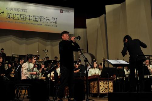 为弘扬继承、繁荣发展中国管乐艺术,由中央音乐学院主办、中央音乐学院民乐系管乐教研室承办的“第四届中国管乐周”将如约与大家见面,这是中国传统音乐界,特别是中国管乐界的又一次学术盛会。    “第四届中国管乐周”在前三届成功举办的基础上,以新的主题内容为策划点,汇集了中国管乐界的众位名家,和近年来在国内重大赛事、活动中获奖的优秀青年演奏家,为观众们奉献多场精彩的音乐会。同时此次的中国管乐周,也邀请了著名民族音乐学家为大家带来最前沿的学术思想和教学主张。    我系唢呐专业张放教授,青年教师郑杰修带领唢呐专业研究生张嘉睿、张晨、陈俊吉前往参会。其中张放教授提交了论文《重视学理性—唢呐音乐艺术科学发展的重要增长点》并在11月7日《中国管乐名家音乐会》中演奏了自己所创作的唢呐独奏曲《川江情》。会议完后经天津前往沈阳音乐学院参加了唢呐教学、研讨会。会上张放教授和郑杰修老师均做了现场师范演奏以及唢呐大师课。对现场同学提出的各种问题一一作了解答,获得了现场师生的热烈掌声和好评。