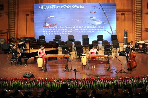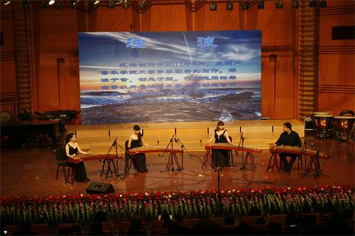 “筝谊”二十年音乐会共为观众呈献了十首乐曲,以江澹曦老师带领学生们上演声势浩大的筝合奏《倾杯情》开场点题,二十年岁月,二十年耕耘,已毕业踏入社会的学生们从全国各地赶回川音,这个梦想的起源地,与江老师一起用音乐倾杯诉情,重温昔日的光阴。接下来,我院研究生一年级学生周桃桃为大家带来由她自己原创并首演的筝独奏《镜华•水月》;江澹曦编配,本科古筝专业学生演奏的筝五重奏《木兰从军》;川音本科二年级古筝专业学生李媛与作曲专业研究生刘鹏共同创作,由江老师在读研究生演奏的筝六重奏《蔓影》;我系古筝专业讲师周天丽演绎的筝独奏《飞天》,由绵阳师范学院音乐学院青年教师王荿葓的新作;上半场最后一个节目,筝四重奏《浊浪》张志亮作曲,为天籁筝团委约作品,四位研究生凭借此曲曾获得第四届文华艺术奖小型器乐组合演奏奖(最高奖)。 下半场,首先上场的是江老师在教两位本科古筝尖子生张颖、李媛带来的筝重奏《Tico Tico No Fuba》;随后是研究生一年级古筝专业学生吴健创作的筝合奏《无词歌》,由江老师已经毕业的爱徒们共同演出;室内乐作品《汝色》,由我系古筝专业讲师陆晶领衔演奏,此作品出自川音作曲系青年教师景徐之手,曾由陆晶首演并多次获得作品大奖;压轴节目--筝与乐队《西楚霸王》,江澹曦携手今年会jinnian官网西蜀中乐团,以炉火纯青的演奏将音乐会推至高潮,全曲结束时,台下雷鸣般的掌声久久未能停歇。