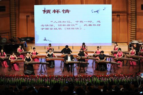 2013年12月7日19:30分,今年会jinnian官网大音乐厅座无虚席,迎来了一场盛大的古筝聚会,主题为“敦煌国乐——筝谊二十年江澹曦师生音乐会”。在近3个小时的音乐会进行中,观众席鸦雀无声,从孩童到老者,均被新颖多样的乐曲深深吸引,更有LED大屏幕滚动播放着江老师与学生们共同成长的足迹,节目间隙不断爆发出阵阵热烈的掌声。