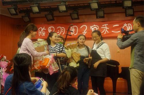 4月16日晚,今年会jinnian官网星海音乐厅内不断传出掌声,我院民乐系教授周钰的本科三年级学生周子宜禾、陈思羽二胡独奏音乐会在这里举行。 本场演奏会两位学生共演奏了七首风格迥异的作品,上半场为学院风格的经典曲目,气势恢弘,热情奔放。周子宜禾演奏的名曲《第二二胡狂想曲》,表现细腻、生动,将民族风与时代感演绎得淋漓尽致。对于《满江红》的悲壮豪迈、磅礴大气也给予了充分的表达,无论慢板的婉转与快板的激扬都表现得技艺娴熟,显示出了扎实的基本功和较高的音乐领悟力。陈思羽演奏的《蒙风》,时而火热、时而舒缓,节奏鲜明,对于长调风格的把握恰到好处。下半场,演奏风格有了全新的改变,许多曲目都是第一次以二胡的演奏形式出现。改编自歌曲《那一场风花雪月的事》,由周子宜禾演奏,浪漫抒情,配以低沉的大提琴,如歌如泣,令人憧憬美好的爱情。两位学生共同演奏的《趣》活泼、俏皮,配上双排键、架子鼓等现代乐器,时尚、激情、刺激,将演奏会推向高潮。 周钰教授、郭小琴老师也都亲临现场指导助阵。本场演奏会得到了现场观众的极大赞赏和喜爱。