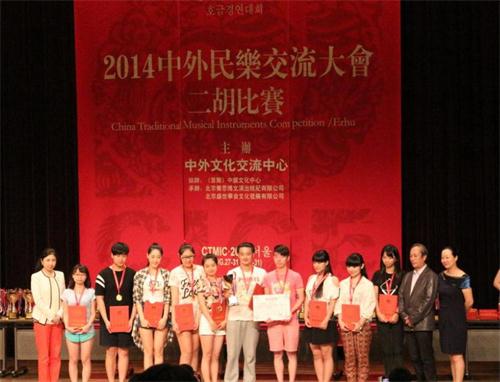 2014年8月28日,由(文化部)中外文化交流中心主办,韩国首尔中国文化中心协办 的2014中外民乐交流大会--二胡比赛在韩国仁川天空活动中心盛大开幕。此次比赛通过层层选拔,晋级决赛的选手90%都来自全国九大音乐学院,有许多是屡次参加国内外比赛取得优异成绩的好手,同时也有来自包括美国在内的海外选手的参加,凸显了这此次比赛的高规格,高专业性。中外文化交流中心副主任严振全 中国驻韩大使馆兼首尔中国文化中心主任史瑞林参赞全程参加了此次活动。