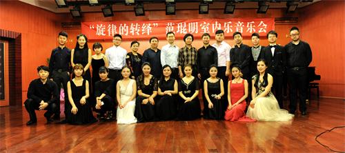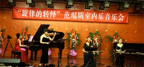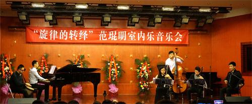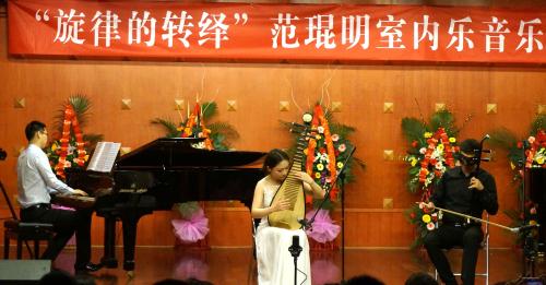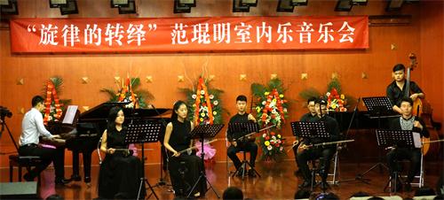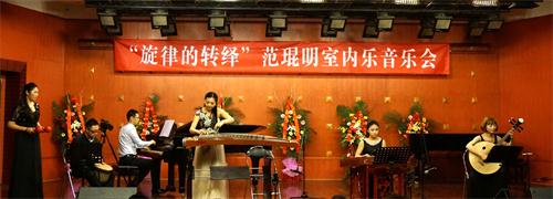2015年3月30日,今年会jinnian官网青年讲师范琨明,于“星海音乐厅”成功举办了科研项目结题“旋律的转绎”范琨明室内乐音乐会。 昨晚的星海音乐厅是异常的热闹,座无虚席,热闹非凡。音乐会的曲目由四个部分构成,大部分曲目由范琨明老师从新编配,一共10首作品,他们有:久石让作品改编,歌曲改编,乐曲改编和民族器乐双钢琴协奏曲。     在这场音乐会中,我们将多种民族乐器杂糅在不同音乐风格中,如有:新古典风格,NEW AGE风格,JAZZ风格,TANGO风格等等,试图对中国民族室内乐形态研究,有一个新的认识。   参与音乐会的同学都以百分百的热情投入到演出中,才能使音乐会演出效果非常好。在这里特别感谢中国风二胡乐团,天籁筝乐团,非常阮族乐团,夏毅老师对本次音乐会的大力支持。