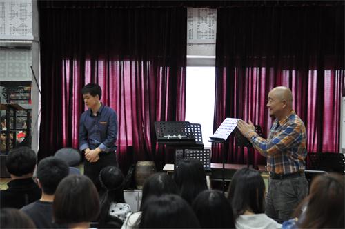 2015年4月21日下午2点30分,民乐系弦乐教研室系列学术讲座在琴房大楼十四层民乐排练厅举行,此次学术讲座的主题为《中国二胡技术训练中的运弓问题》,主讲人是民乐系青年二胡教师张国亮老师。张老师从对比不同版本的乐曲音响资料为切入点,为大家提出了决定二胡演奏好坏的两个方面,即音乐载体(音质和音色)与音乐内容(情绪、情感、主题形象、抽象形象)的关系,其中从音乐载体的重要性来解读了二胡运弓中容易出现的两个误区,第一是发力系统认知错位,第二是发力位置认知的错位。并从不同演奏需要的实际情况出发提出了分段控制的方法等诸多解决思路。张国亮老师借用生活中的种种实例来加以分析,幽默生动的语言引得现场阵阵笑声和掌声。 学术讲座由弦乐教研室主任周钰教授主持,民乐系梁云江教授以及弦乐教研室全体师生到场观摩,现场座无虚席。讲座后老师和同学们也就题目中的一些话题进行了交流和讨论。主讲人张国亮老师表示,通过参与教研室系列学术讲座,大家有了一个很好的专业交流氛围,不仅让同学们有机会接触到不同老师带来的专业知识和研究心得,也让老师之间形成了讨论和互动的平台,自己也受益匪浅,希望系列活动能够一直继续下去。