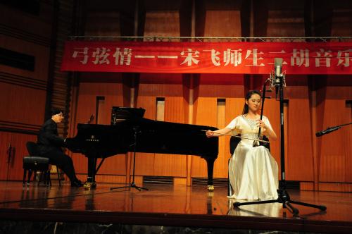 5月15日,中国音乐学院副院长,著名二胡演奏家,教育家宋飞教授应我院邀请,于昨天上午在我院本部大音乐厅成功举办题为“如何克服公开演奏的紧张心理”的学术讲座和“弓弦情——宋飞师生二胡音乐会”。