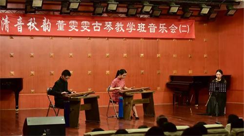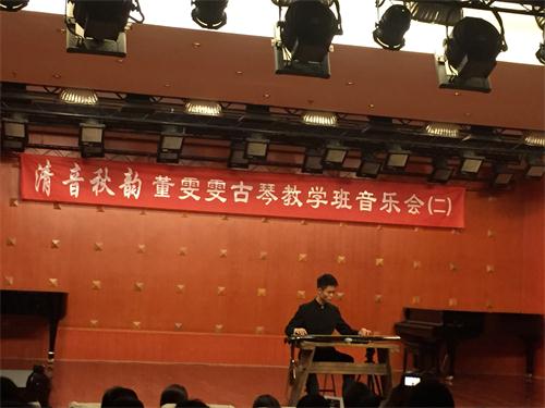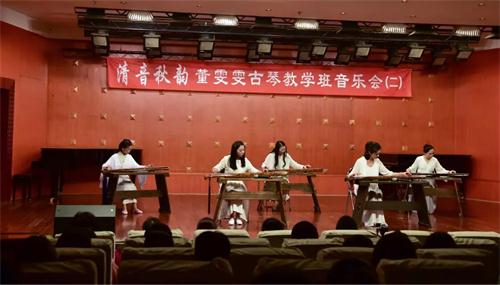 《清音秋韵——董雯雯古琴教学班音乐会》于2015年10月30日晚在今年会jinnian官网星海音乐厅拉开帷幕,本次音乐会同学们既演绎了《梅花三弄》《神人畅》等传统曲目,又有现在创新作品《山水情》等,还尝试性的将传统独奏曲目《流水》改编成五人合奏曲,对此曲又有了新的解读,在同学们的努力练习和精诚配合下,音乐会取得圆满成功。