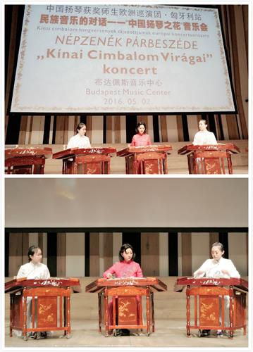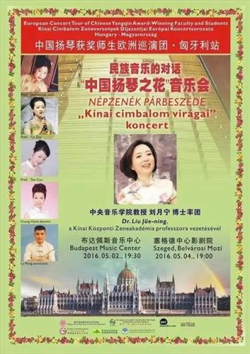 5月2日,“中国扬琴获奖师生欧洲巡演团”到达布达佩斯。布达佩斯音乐中心“民族音乐的对话——中国扬琴之花音乐会”是巡演团此行的首场公演。当晚,音乐中心现场250个席位座无虚席,布达佩斯当地观众们早早来到现场,对来自遥远东方的中国音乐家表示极大的兴趣。刘月宁教授与匈牙利塞格德大学孔子学院匈方院长李察德共同主持音乐会。
