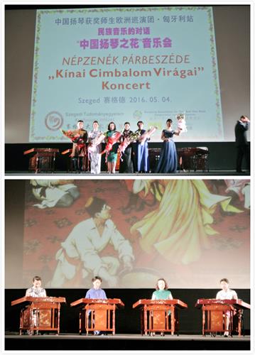 在匈牙利著名钦巴龙演奏家鲍洛格·卡尔曼和五位中国扬琴教授级演奏家合奏了的匈牙利民间乐曲《索特马尔舞曲》欢快愉悦的旋律中,中欧扬琴匈牙利李斯特所大学交流音乐徐徐落下帷幕,而因此种植的友谊之泉则将源远流长。