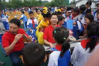 范老师说,蒲江甘溪小学早已不是十几年前他所来时那个仅有两栋教学楼的贫穷小学了。当时的甘溪小学是由一名叫做浜一的国际友人所捐赠扶持,所以当时叫做浜一小学。那个时候的孩子们也全然没有接触音乐的机会,直到浜一先生捐赠了第一架钢琴,孩子们才开始慢慢接触到音乐,然而音乐方面的师资也是一个巨大的问题,所以,当范老师第一次来到这个希望小学,他就下定决心,要为这些孩子们播种音乐的梦想与希望。在范老师的努力下,支教队伍不断壮大,支教形式逐渐多样化,受益的孩子也越来越多,此次支教活动中,我系扬琴专业教师王英教授也将自己出版的书籍带到了希望小学,希望能为更多的孩子送去了知识与力量。