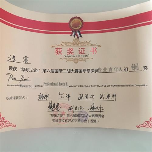 应组委会邀请,我系梁云江教授于2016.8.6-10号赴厦门担任了第六届“华乐之韵”二胡比赛评委。来自中国、日本和新加坡等国的近百名选手参加了此项赛事决赛,经过激烈角逐,我系三年级学生潘瑞获得专业青年A组铜奖(指导教师:侯少哲);附中高二学生杨琪铭获得专业少年A组金奖(指导教师:梁云江),向两位学生和他们的指导教师表示热烈祝贺。