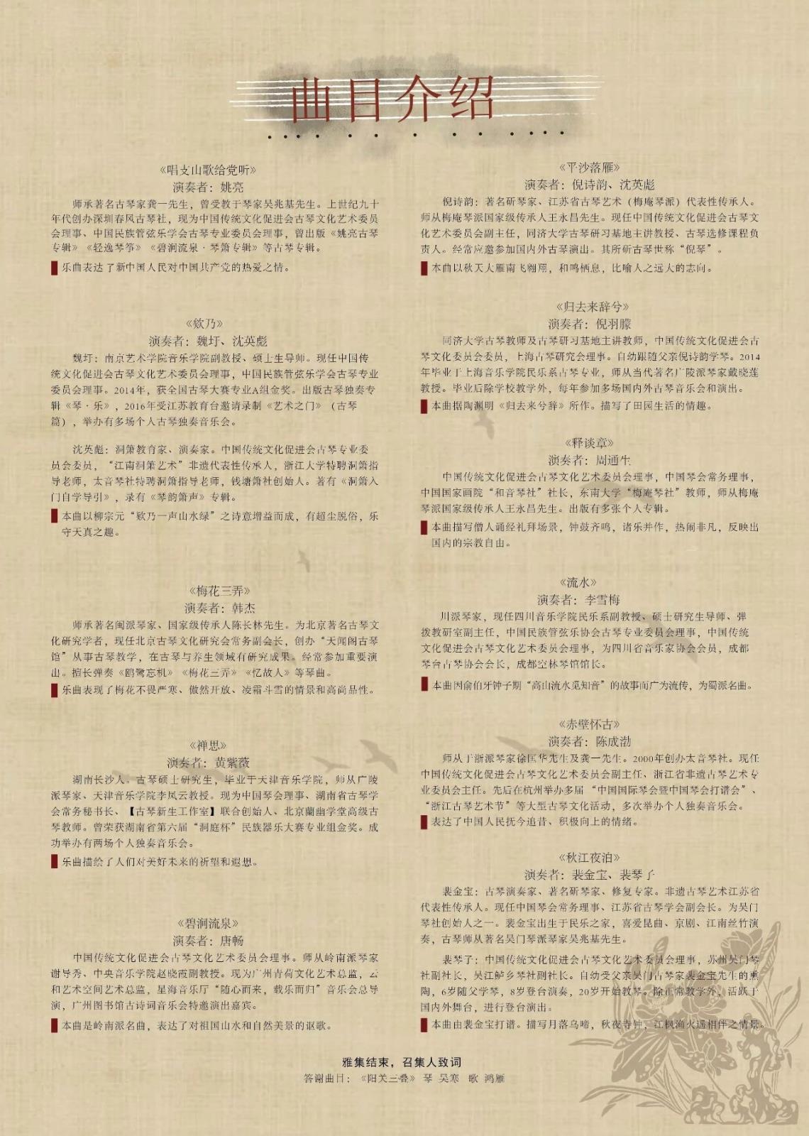 音乐会既尊重传统、更歌颂未来,通过琴以载道的唱诵古今,展现出华夏文明的精神气韵,让观众感受到文化的波澜壮阔,让琴人用琴音为党的100周年献上最美好的祝愿,在新时代下重新焕发的活力与生机。