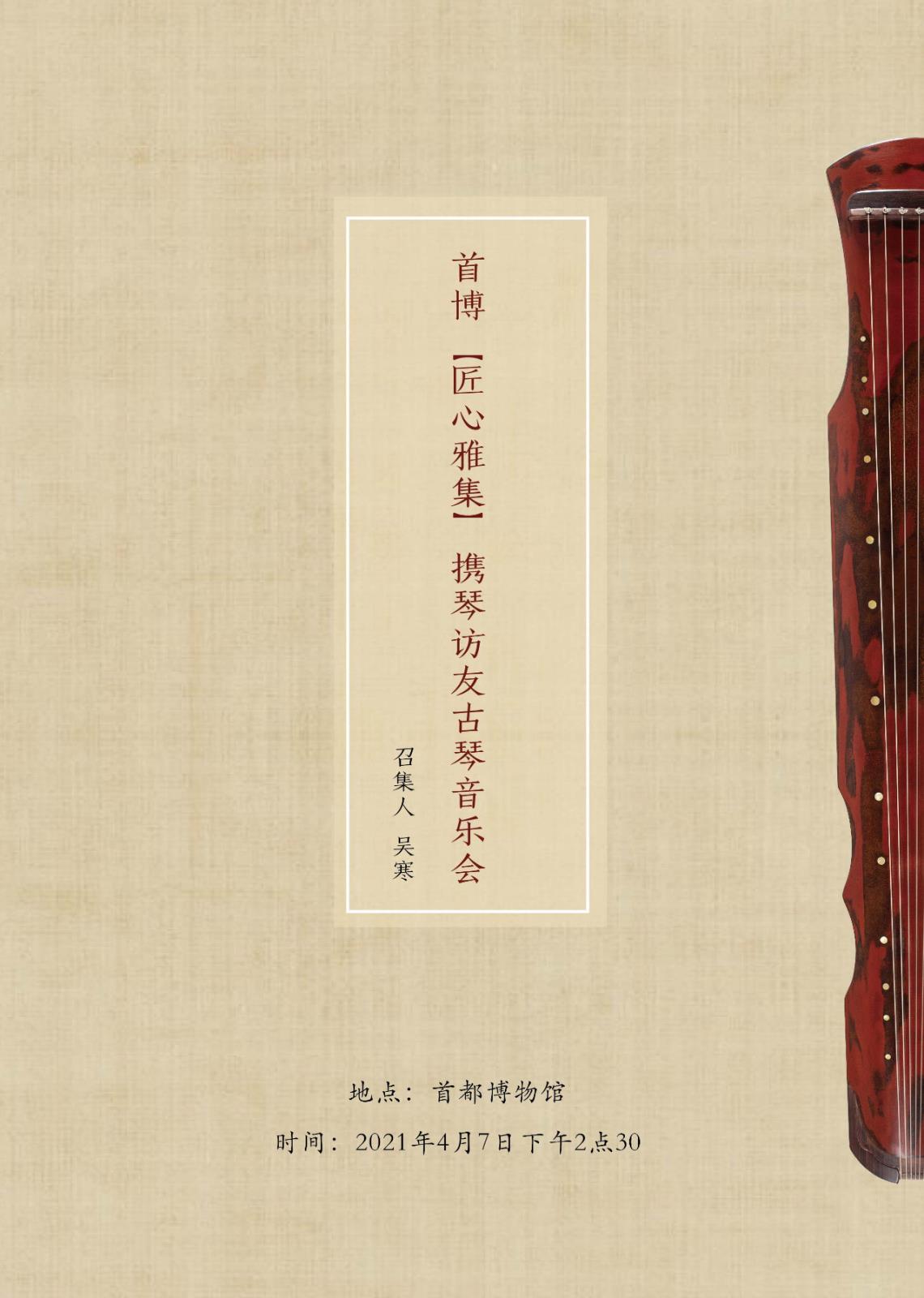 2021年4月7日,一场名为“匠心雅集”—山水回响,三千年书卷中的琴意”的古琴音乐会在北京首都博物馆隆重举行。