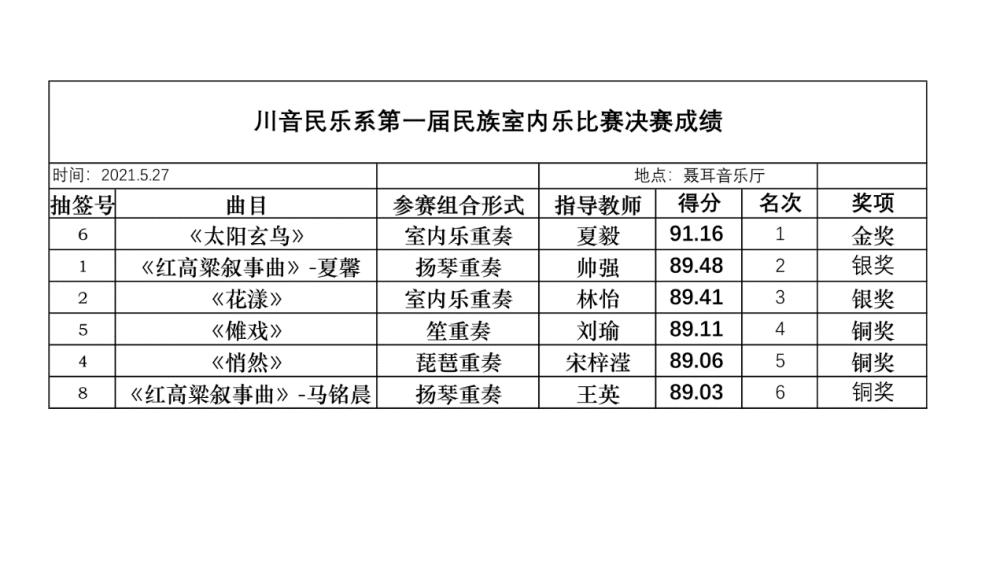 这是一次精彩的比赛,一次多元素音乐的碰撞交流,更是对同学们付出努力的一种肯定。民乐系第一届民族室内乐比赛已圆满落幕,我们期待着在未来的日子里,民乐系学子能继续保持着对室内乐的热情与喜爱,在下届民族室内乐比赛中带给我们更多的惊喜!