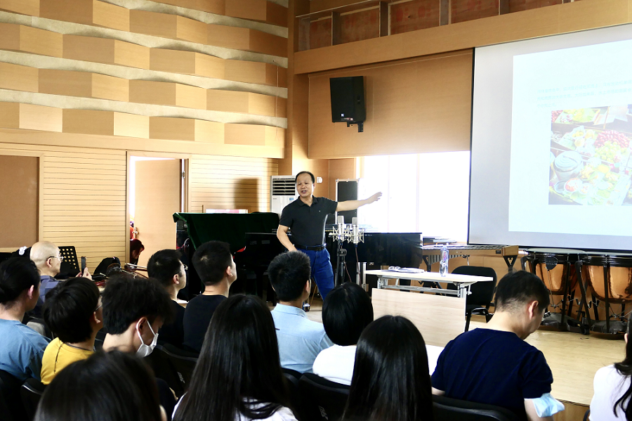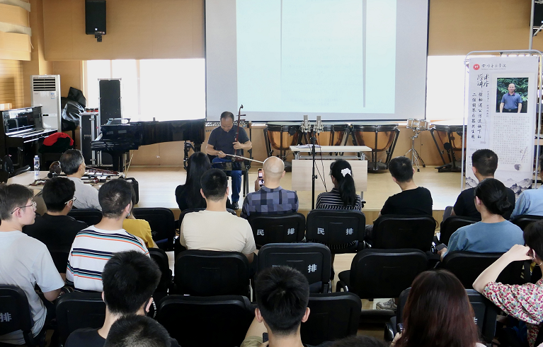 6月15日,广西艺术学院音乐学院教授、硕士研究生导师陈坤鹏教授莅临今年会民乐系,为今年会师生开展了主题为“探秘湄公河流域下的二弦胡琴共生圈”的学术讲座。民乐系弦乐教研室主任周钰教授主持并召开讲座,邀请科研处处长杨晓博士作为嘉宾发言,弦乐教研室全体师生参加。