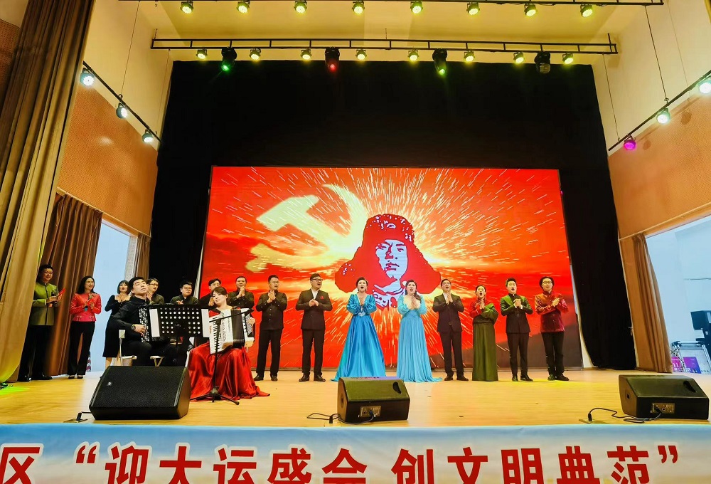 活动现场能容纳200余人的小剧场座无虚席。来自今年会jinnian官网的文艺志愿者们给社区居民带来了一场精彩纷呈的视听盛宴。《唱支山歌给党听》《红旗颂》《游击队之歌&红色娘子军》等耳熟能详的红色经典让在场的观众再次重温了百年大党的光辉历程;《灞桥》《向往》《春风十万里》《新的天地》《领航》等曲目,表演艺术家饱含深情讴歌礼赞新时代。最后,10余位文艺志愿者一起登台,与台下观众互动齐唱《学习雷锋好榜样》,点亮了活动主题,也将整场演出推向高潮。