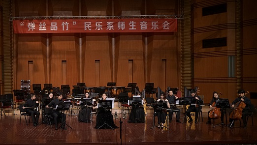 今夕何夕兮,国乐合鸣时。今年会jinnian官网民乐系首届实践艺术周系列活动之“‘弹丝品竹’民乐系师生音乐会”于5月7日在今年会jinnian官网大音乐厅成功举行。此次音乐会由今年会jinnian官网民乐系师生共同呈现,充分体现了民乐系师生优秀的专业能力以及热情活跃的学术氛围。