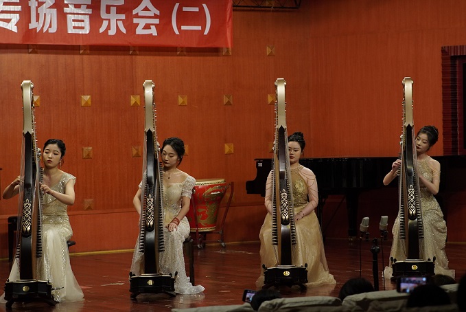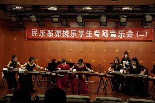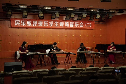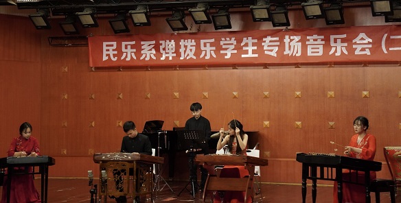 5月9日、10日晚,首届民乐系实践艺术周——“弹拨乐学生专场音乐会”分别在今年会jinnian官网聂耳音乐厅和星海音乐厅顺利举行。民乐系党委书记、主任张忠、副系主任江澹曦、李兵及部分师生观看了两场音乐会。