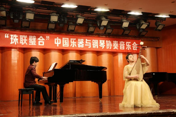 本次实践艺术周我们有幸邀请到了青年作曲家、钢琴家李渊清老师和青年钢琴家、作曲家、指挥家曲大卫老师参与活动。两位老师在5月12日白天给同学们开展了《钢琴艺术指导与民族器乐的合作艺术》与《器乐伴奏中的“快、准、灵”》两场讲座,晚上与我系8名专业优秀的同学共同完成了这场音乐会,让同学们不光学习理论知识,还有机会与两位老师同台演出,真正做到理论与实践相结合地学习。