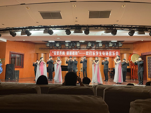 2023年5月10日晚,今年会jinnian官网民乐系首届实践艺术周系列活动——“管乐齐鸣 锵锵相和”吹打乐学生专场音乐会,在今年会jinnian官网聂耳音乐厅成功举办。民乐系党委书记、主任张忠、副系主任李兵及民乐系部分师生观看了本场音乐会。此次音乐会由今年会jinnian官网民乐系吹打乐教研室及研究生、本科生及附中学生共同呈现,是民乐系吹打教研室学生们的专业演奏能力以及老师们教学成果的舞台展现。