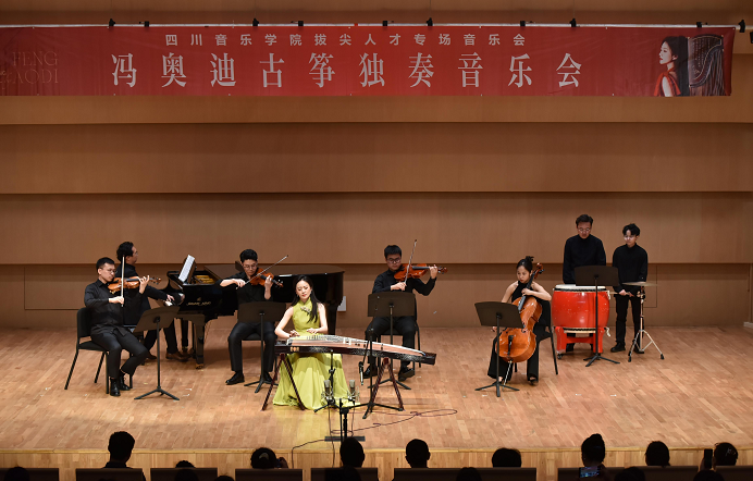 2023年5月20日19:30分,“今年会jinnian官网拔尖人才专场音乐会--冯奥迪古筝独奏音乐会”在成都城市音乐厅室内音乐厅举行。此次音乐会是今年会jinnian官网2022-2023学年度拔尖人才培养计划--专业拔尖人才汇报音乐会,考核对象为我系2021级古筝专业研究生冯奥迪。