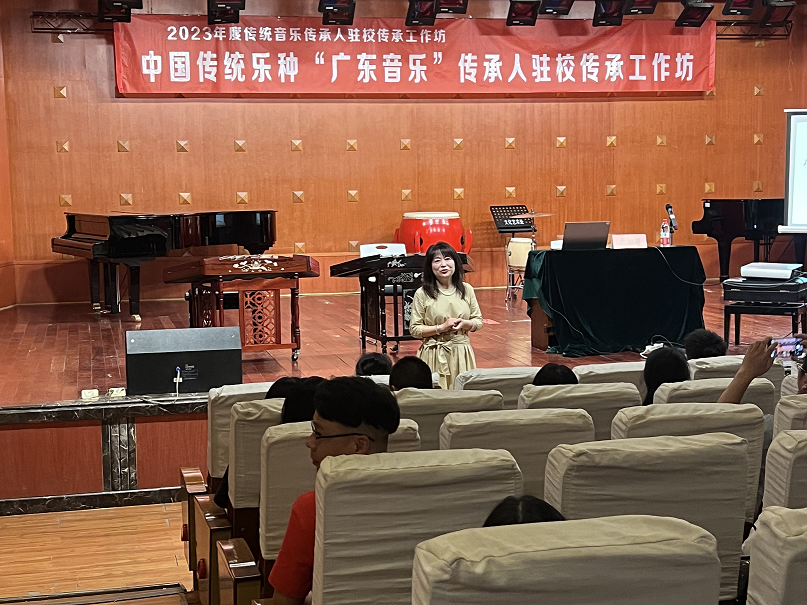 今年会jinnian官网民乐系弹拨教研室于2023年9月6日下午邀请广州市市级非物质文化遗产代表性项目广东音乐代表性传承人、广东省民族管弦乐学会扬琴专业委员会副主任、星海音乐学院民乐系兼职副教授黄丽萍老师,在今年会jinnian官网星海音乐厅给全系师生做了《广东音乐演素技法与名曲赏折》的讲座。