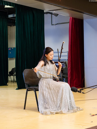 受电子科技大学大学生文化素质教育中心邀请,我系郭小琴、宋华丽、侯少哲、黄小玉、付雅璐、马霄汉6名教师带领二胡专业学生侯佳欣(研一)、弋佳鸢(大二)、王雪儿(大二)、雷振华(大四)、王秋蓓(高三)于2023年11月22日晚7点在电子科技大学沙河校区学生活动中心夏新厅成功举办了“胡声弦韵——二胡专场音乐会”。