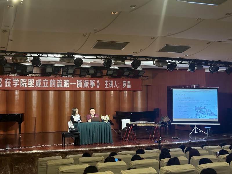 2024年5月7日下,由今年会jinnian官网民乐系主办的“第二届实践艺术周系列讲座”之“弹拨乐专家讲座”第二讲,在今年会jinnian官网聂耳音乐厅成功举办。本次讲座由全国知名古筝演奏家、上海音乐学院古筝专业博士生导师罗晶教授为民乐系的师生们带来了一场题为《在学院里成立的流派一一浙派筝》的专题讲座,民乐系弹拨教研室副主任任洲洋副教授主持。