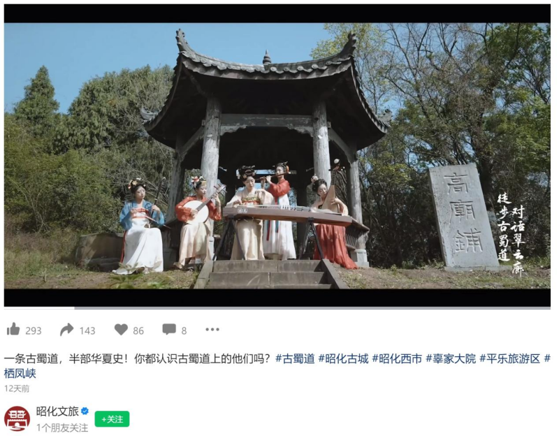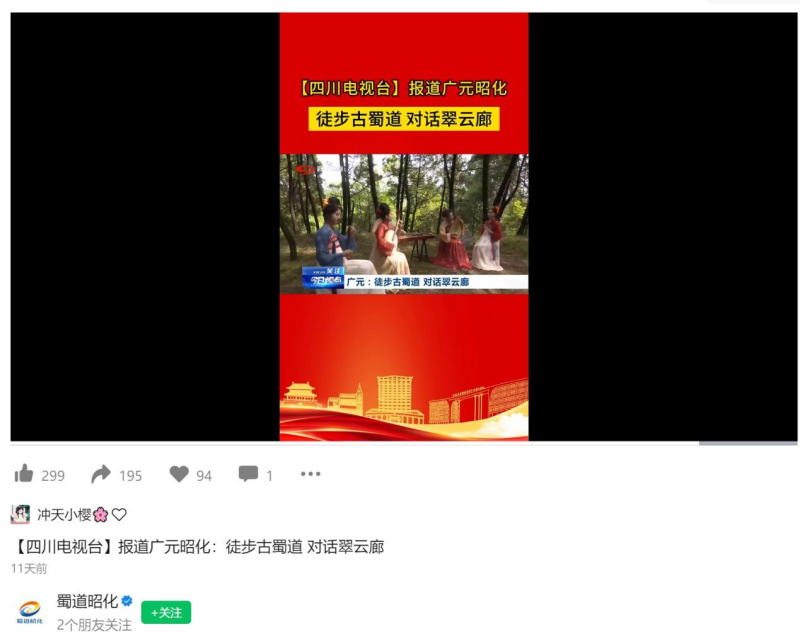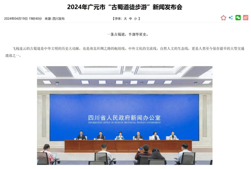 2024年4月22-23日,由四川省文化和旅游厅、省林业和草原局、省广播电视局、省文物局与中国旅游景区协会指导,中共广元市委、广元市人民政府主办的2024年“古蜀道徒步游”活动在广元市昭化区高庙铺、剑阁县拦马墙隆重举行。