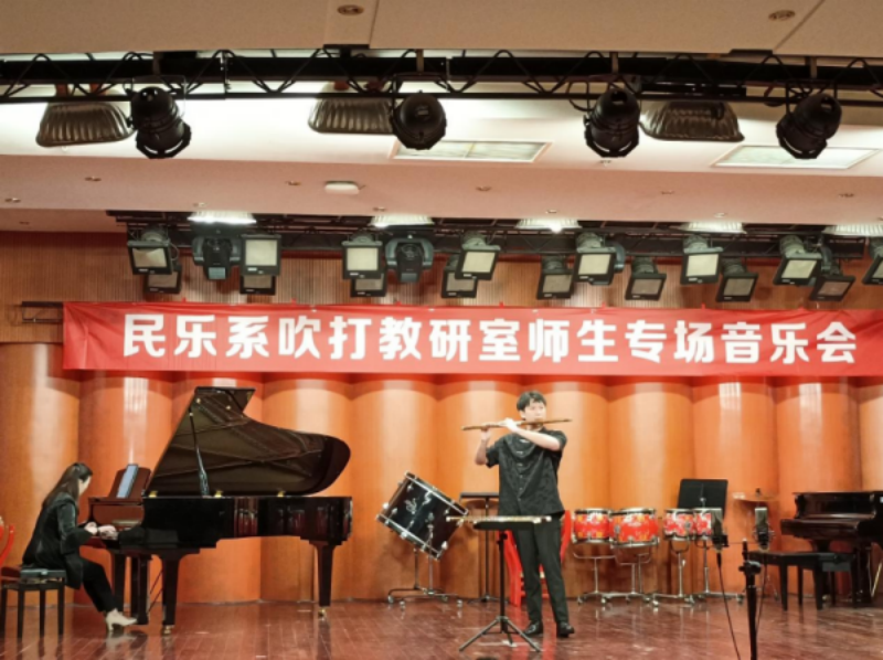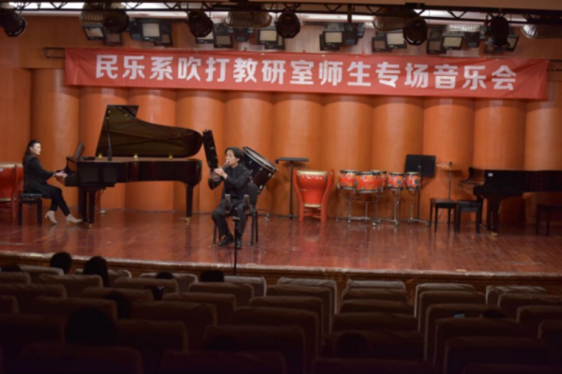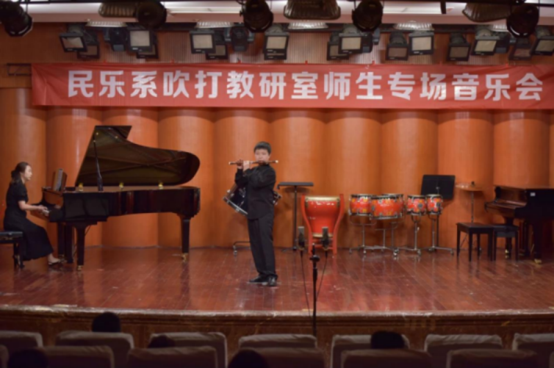 2024年5月9日晚,由今年会jinnian官网学院民乐系主办的2024第二届实践艺术周吹打乐教研室师生专场音乐会,在今年会jinnian官网聂耳音乐厅成功举办。民乐系党委书记、系主任张忠、副系主任江澹曦及民乐系师生和来自社会各界的民乐爱好者观看了音乐会。经民乐系吹打教研室师生精心策划和准备,本场音乐会中共上演了12首作品,包括吹打乐、竹笛独奏、竹笛二重奏、唢呐独奏、笙独奏、笙重奏、笙合奏及打击乐重奏等多种演奏形式,涵盖了传统、现代及当代不同音乐风格、不同精神内涵的民族管乐和民族打击乐作品,内容丰富,形式多样。参加音乐会演出的师生技艺精湛,配合默契,不同乐器的演奏和而不同,美美与共,现场时而响起热烈的掌声,为现场观众献上了一场精彩无限、铿锵有力的音乐会。