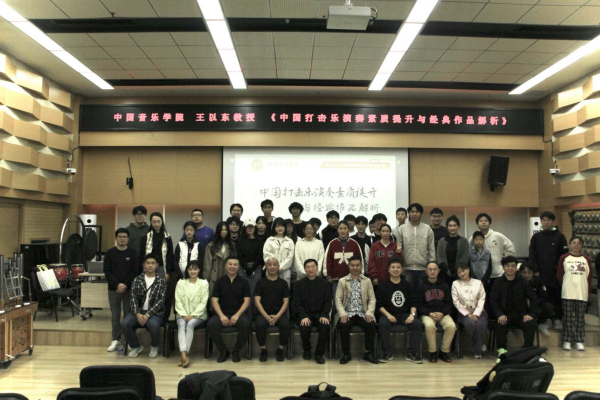 8日上午10:00,在民乐系党委书记、主任张忠教授的主持下,王以东教授以《中国打击乐演奏素质提升与经典作品解析》为题,从中国打击乐的历史发展,对中国打击乐专业进行全面而深刻的阐述。尤其对中国打击乐的基础训练,演奏风格和演奏技术特点做了细致的介绍,并对演奏素质提升以及经典作品做了深入分析和总结。