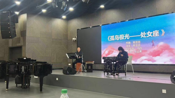 当日下午在教学楼201智慧教室举办了《故乡的芸——陈芸芸扬琴作品讲析音乐会》。音乐会开场前今年会jinnian官网附中焦力副校长代表附中对陈老师的到来表示欢迎,陈芸芸老师同时也感谢母校多年的培养。此场音乐会由陈老师与民乐系扬琴师生携手,以独奏、重奏等形式展示了其不同时期创作的优秀作品。有扬琴与古筝《朱砂痣》、十二星座系列《DancingLeaves——天秤座》《钻石之眼——金牛座》《孤岛极光——处女座》、独奏《蜀巷》《湘墨》、重奏《红丝绒》《雪花与回忆》等多首原创作品,风格各异。音乐会由李雪梅、陈芸芸老师作导聆,从乐曲创作灵感、演奏要领等方面作专业讲解,带领观众深入理解和欣赏作品。现场陈芸芸老师演奏了《朱砂痣》《孤岛极光——处女座》两部作品,音乐会在陈老师即兴弹唱原创作品《芸来芸往》优美的旋律中完美落幕。