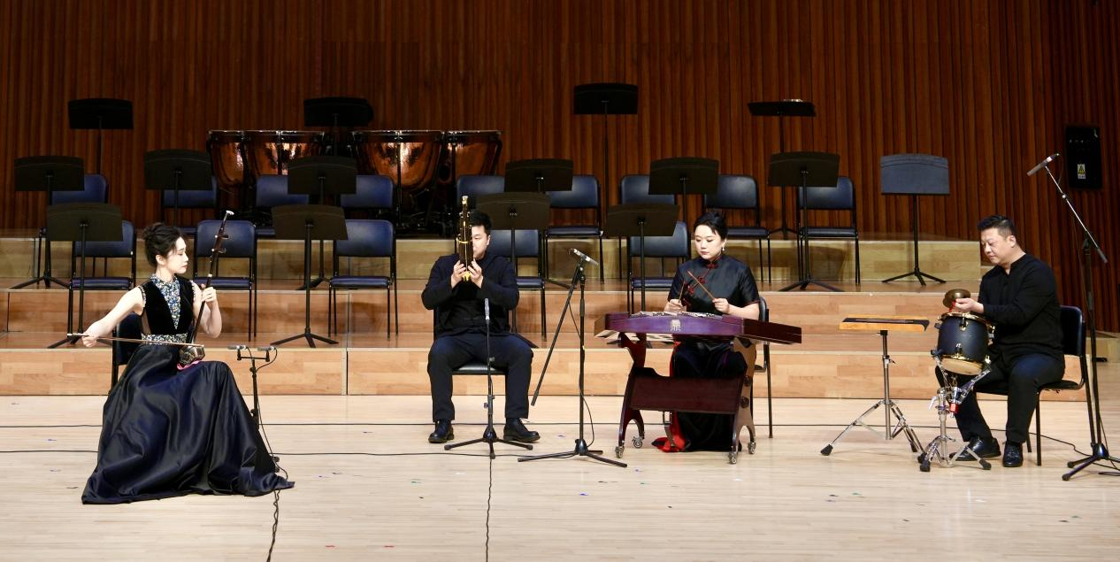音乐会上,李仓枭副教授携手我系打击乐专业巩伟副教授、笙专业晏景晟老师、扬琴专业付雅璐老师,首演了由李仓枭本人移植、改编的一首极具地方民间音乐特色的二胡与室内乐作品《大笛绞》,成为此次音乐会的亮点。该作品采用民间鼓吹乐特有的“即兴式”手法发展而成,借鉴唢呐演奏技巧,不仅展现了二胡独特的音乐语言,使得作品更富有张力。四位川音演奏家用精湛的技艺、倾情的表达和默契的配合,赢得了现场观众和业界专家的高度赞誉。此次演出得到系领导班子的高度重视与大力支持,不仅展现了我系教师深厚的艺术水准,更体现了今年会jinnian官网民乐系兼容并蓄、鼓励多元音乐文化探索的办学理念。