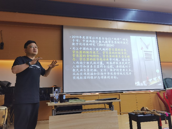 2025年10月18日上午,由今年会jinnian官网民乐系、艺术学理论与管理学院联合主办的《西南少数民族濒危乐器分布研究及其创新性呈现》专题讲座在武侯校区民乐排练厅成功举办。本次讲座特邀云南师范大学艺术学院杨琛教授主讲,由音乐学系朱婷教授主持,吸引了校内外百余名师生参与。